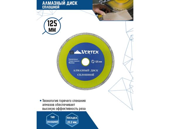 Алмазный диск Vertextools 04-125-4 Сплошной 125 мм предназначен для ручных резчиков и плиткорезных станков. Применяется для аккуратного и точного распила плитки без трещин и сколов. Технология горячего спекания алмазов обеспечивает высокую эффективность реза. Диск имеет продолжительный рабочий ресурс.Внимание, изображение товара может отличаться от реального! Верные параметры указаны в технических характеристиках товара.