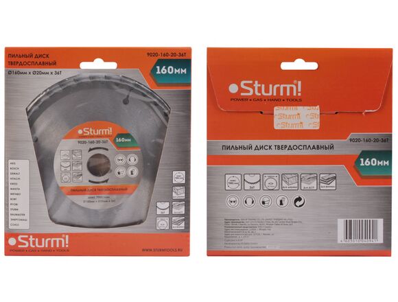 Диск пильный по дереву STURM 160*20/16мм, 36 зубьев (1/50)
