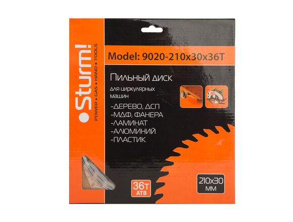Диск Sturm 9020-210-30-36T является сменным элементом для циркулярных и торцовочных пил. Применяется для продольного и поперечного распила мягкой и твердой древесины, фанеры, ДСП, ламината, пластика и плитных материалов. Оснастка производится на высокотехнологичном оборудовании, что обеспечивает высокое качество. Диск изготовлен из высококачественной углеродистой стали с усиленными твердосплавными пластинами.