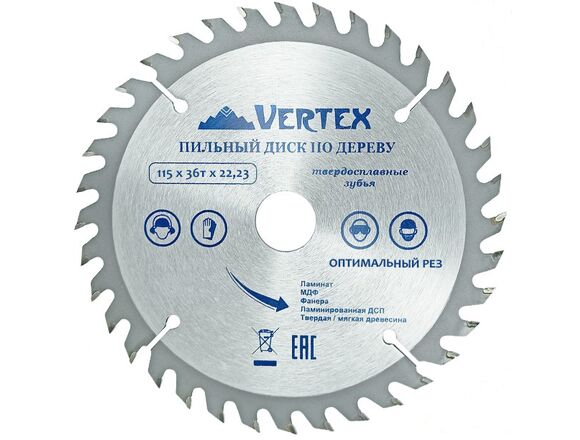 Диск пильный по дереву VERTEX 115*36Т*22,2мм (1/100)