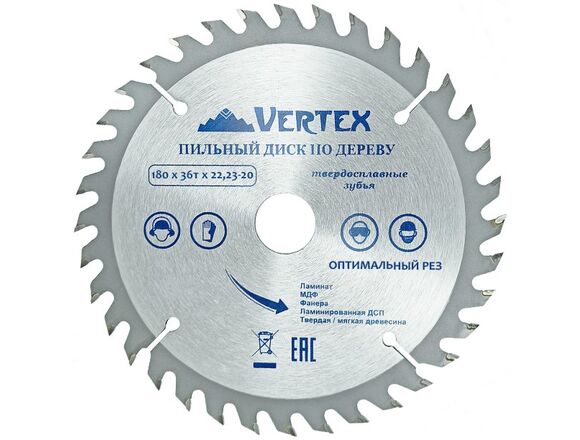 Диск пильный по дереву VERTEX 180х36Тх22,2/20мм (1/50)