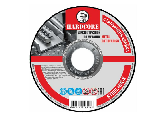 Круг отрезной по металлу и нержстали HARDCORE 115*1,6*22,2мм (10/50/600 )