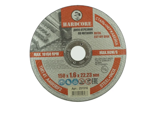 Круг отрезной по металлу и нержстали HARDCORE 150*1,6*22,2мм (5/25/400 )