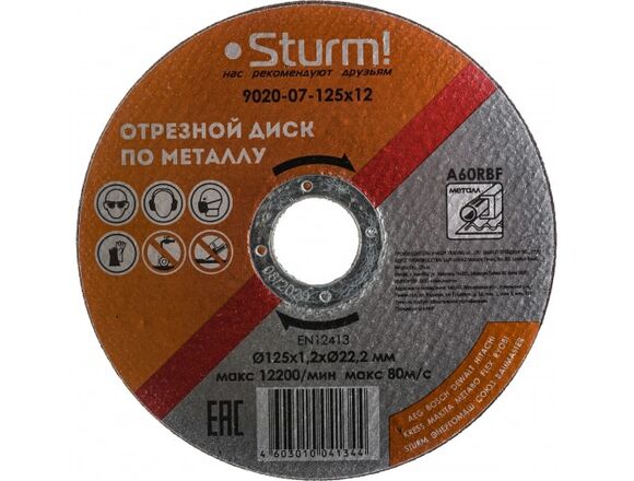 Круг отрезной по металлу STURM АРМИРОВАННЫЙ 125*1,2*22,2 мм (25/500)