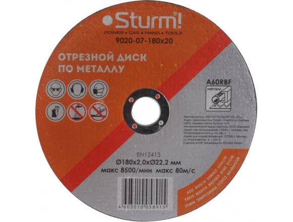 Отрезной диск Sturm 9020-07-180x20 используется в угловых шлифовальных машинах для распила изделий из металла. Благодаря небольшой толщине диска рез получается точный и качественный.