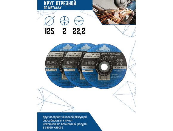 Круг отрезной по металлу VERTEX 125 х 2.0 х 22,2 мм (25/200)