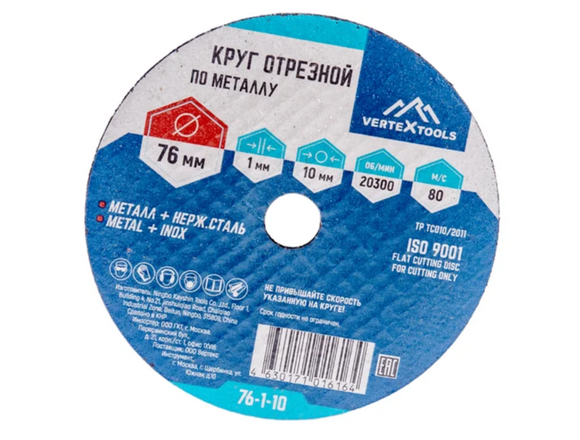 Круг отрезной по металлу VERTEXTOOLS 76х1х10 МИНИ УШМ 25/100/600)