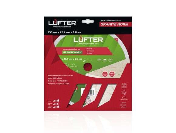 Диск алмазный LUFTER GRANITE NORM 250*25.4*1,6*85мм ГРАНИТ ПЕСЧАНИК (10/30)