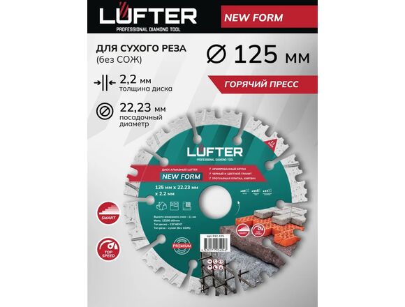 Диск алмазный LUFTER NEW FORM 125*2.2*11мм СЕГМЕНТ ПО ГРАНИТУ, ТРОТУАРНОЙ ПЛИТКЕ, АРМИРОВАН(25/100)
