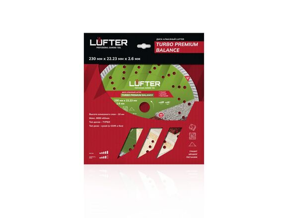 Диск алмазный LUFTER TURBO PREMIUM BALANCE 230*2,6*22,2*10мм ГРАНИТ ТИП ГАББРО(10/50)