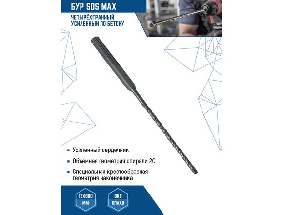 Бур SDS MAX 12x800 мм vertextools 888-12-800 используется в перфораторах с системой крепления SDS-max. Применяется для работ по бетону, граниту, кирпичной кладке и твердым известнякам.