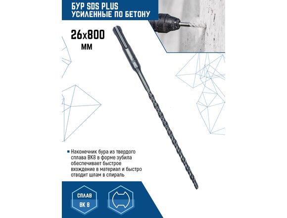 Бур SDS-plus Vertextools 999-26-800 предназначен для перфораторов с системой крепления SDS-plus. Применяется для бурения сквозных/глухих отверстий в кирпиче, бетоне.