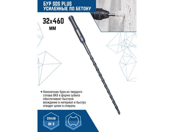 Бур SDS-plus Vertextools 999-32-460 предназначен для перфораторов с системой крепления SDS-plus. Применяется для бурения сквозных/глухих отверстий в кирпиче, бетоне.