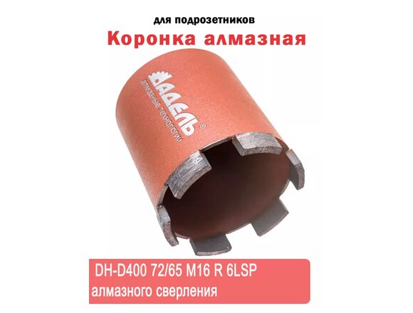 Коронка алмазная АДЕЛЬ M16 Ø72*65мм DH-D400 R 6LSP с микроударом, в сухую (без подачи СОЖ)