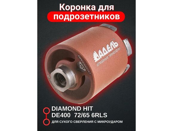 Коронка алмазная АДЕЛЬ M16 Ø72*65мм DH-DE400 R 6LSP с пылеудалением