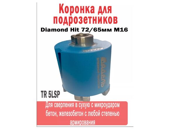 Коронка алмазная АДЕЛЬ M16 Ø72*65мм SF-D70 TR 5LSP с пылеудалением