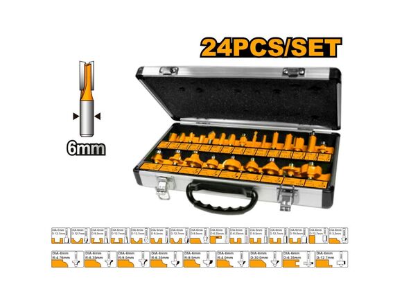 Набор фрез INGCO 24шт, цанга 6мм, КЕЙС (1/10)