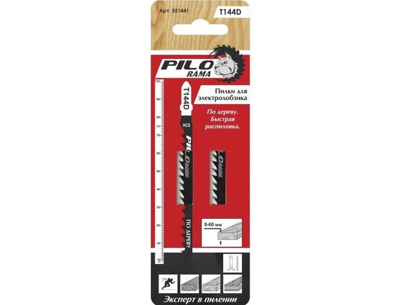 Пилки для лобзика PILORAMA T144D (2шт) 100*75мм дерево, фанера, ДСП, (10/100/400)