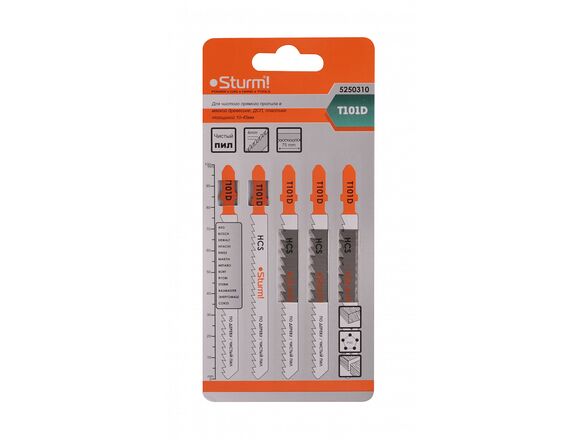 Пилки для лобзика STURM 101D (5шт), прямолинейный чистый рез 10-45мм пластик, ДСП, ДВП (50/400)