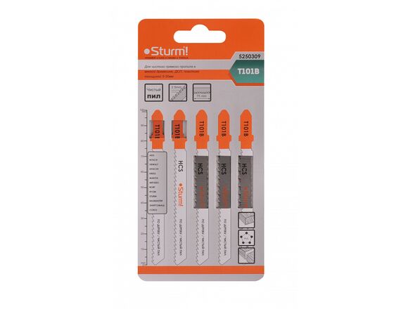 Пилки T101B Sturm 5250309 используются для чистого прямого пропила в мягкой древесине, ДСП, пластике толщиной 5-30 мм с помощью электролобзика. Выполнены из высокоуглеродистой стали, имеют длительный срок эксплуатации.