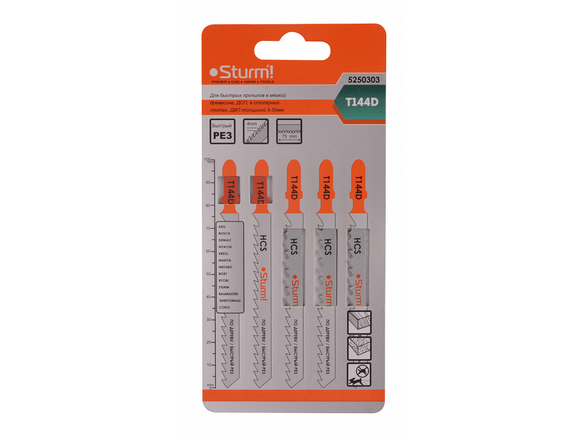 Пилки для лобзика STURM 144D (5шт), быстрый рез 5-50мм мягкая древесина,ДСП,ДВП (50/400)