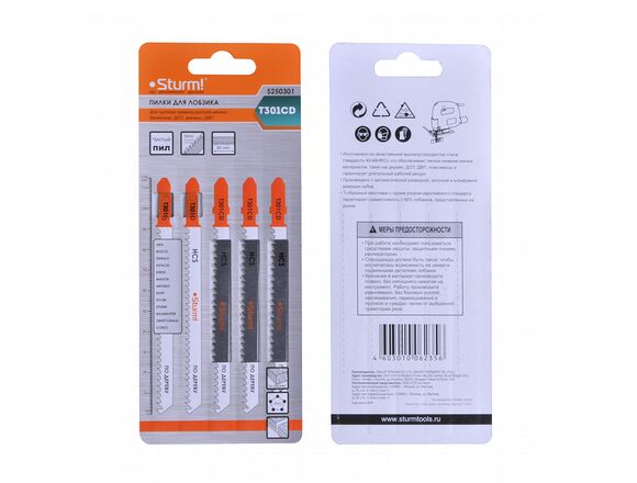 Пилки для лобзика STURM 301СD (5шт), чистый рез 5-100мм мягкая древесина, ДСП, ДВП (50/400)