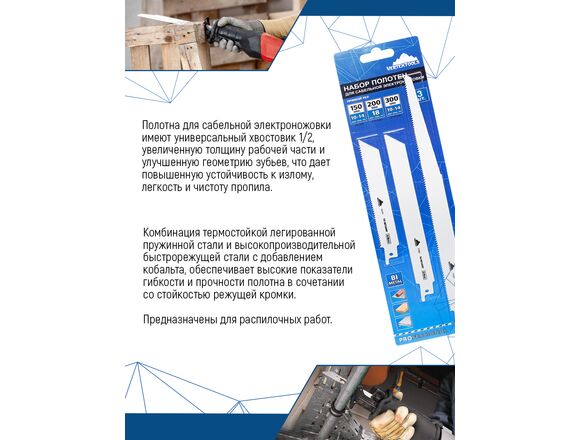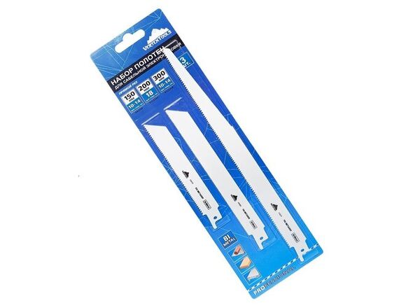 Набор полотен для сабельной электроножовки 3 шт vertextools НП-150-200-300 имеют универсальный хвостовик 1/2, увеличенную толщину рабочей части и улучшенную геометрию зубьев, что дает повышенную устойчивость к излому, легкость и чистоту пропила.