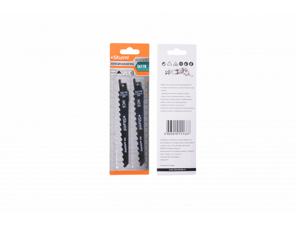 Полотна (2 шт; 150 мм) для сабельных пил Sturm 9019-03-S617K предназначены для пропила грубой древесины без гвоздей (2-100 мм), кустов и веток, живой древесины (<100 мм).