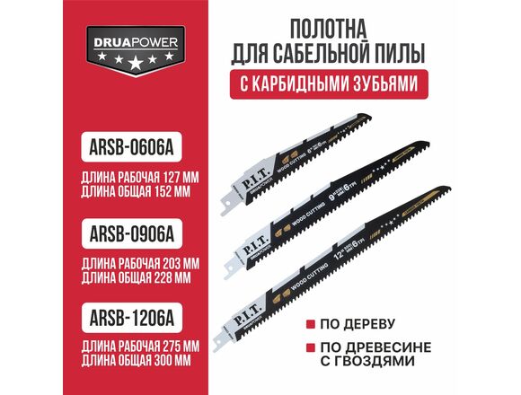 Пильное полотно для сабельных пил ARSB-0606A серии DRUA идеально подходит для работ по различным видам древесины, в том числе б/у древесины с гвоздями.