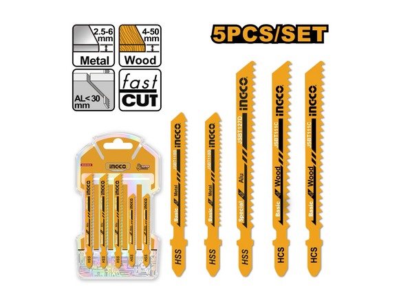 Набор пилок для лобзика INGCO 5шт (2 дерево + 3 металл) блистер (50/250/500)