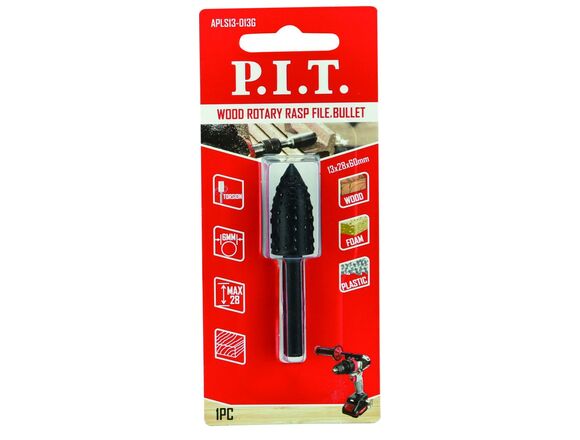 Шарошка стальная по дереву P.I.T. 13*23мм параболическая удлиненная, хвостовик 6 мм