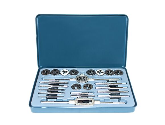 Набор метчиков и плашек для нарезания резьбы Sturm 1065-03-S24 пригодится для выполнения сантехнических работ, использования в мастерской или в гараже. Служит для ремонта старых и нарезания новых внутренних и наружных резьб. Инструменты выполнены из прочной стали, стойкой к большим нагрузкам, обеспечивающей точность работы. Набор из 24 предметов расположен в пластиковом кейсе, удобном для хранения и бережной транспортировки.