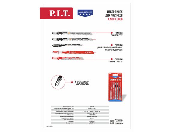 Набор пилок для лобзиков P.I.T. ADVANCE 5шт дерево/металл/фигурный рез, блистер