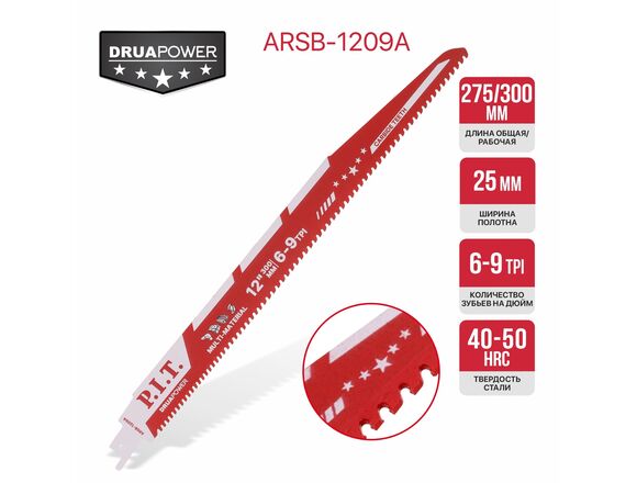 Полотно для сабельной пилы с карбидными зубьями P.I.T. DRUA 2 шт, 228*1,3мм, 6-9 TPI МЕТАЛЛ ДЕРЕВО П