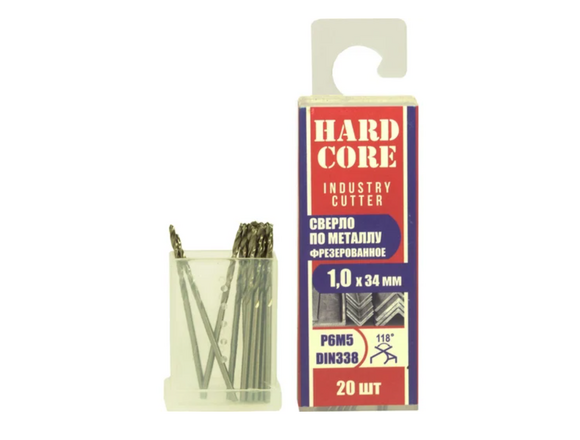 Сверло фрезерованное по металлу Industry cutter Р6М5, 1x34 мм, 20 шт Hardcore 146010 предназначено для дрелей. Используется для сверления отверстий в металле.
