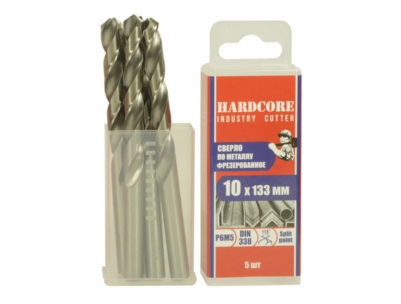 Сверло по металлу HARDCORE INDUSTRY CUTTER 10.0*133мм 5шт/уп, P6M5 ПЛАСТИК БОКС (1/10/40)