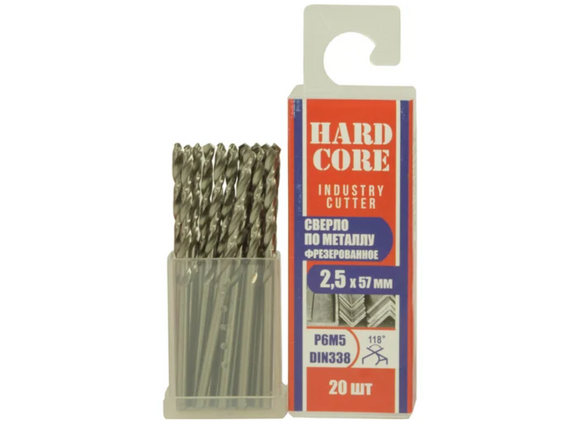 Сверло фрезерованное по металлу Industry cutter Р6М5, 2.5x57 мм, 20 шт Hardcore 146025 предназначено для дрелей. Используется для сверления отверстий в металле.