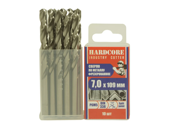 Сверло по металлу HARDCORE INDUSTRY CUTTER 7.0*109мм 10шт/уп, P6M5 ПЛАСТИК БОКС (1/10/60)