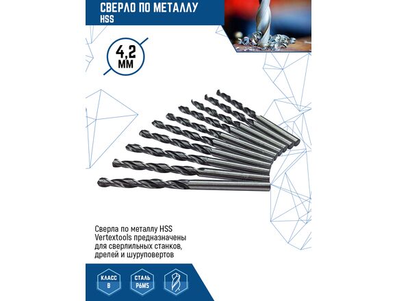 Сверло по металлу HSS Vertextools 1122-0420 предназначено для сверлильных станков, дрелей и шуруповертов. Применяется для сверления сквозных/глухих отверстий в изделиях из металла. Изготовлено из инструментальной быстрорежущей стали. Сверло имеет крестообразные зубья и двойную насечку, что обеспечивает улучшенную обработку с минимальной вибрацией и образованием мелкой стружки.