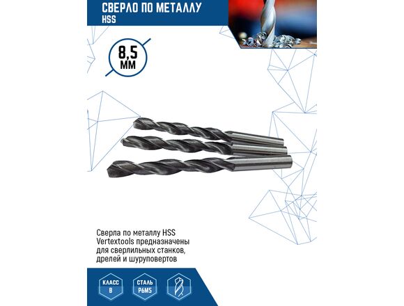 Сверло по металлу VERTEX hss 8,5мм 5шт/уп (10/100/500)