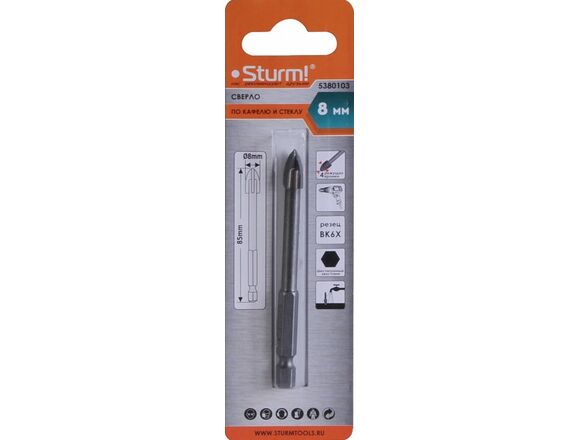 Сверло по стеклу и плитке STURM "крест" 8мм, шестинранный хвостовик (125/500)