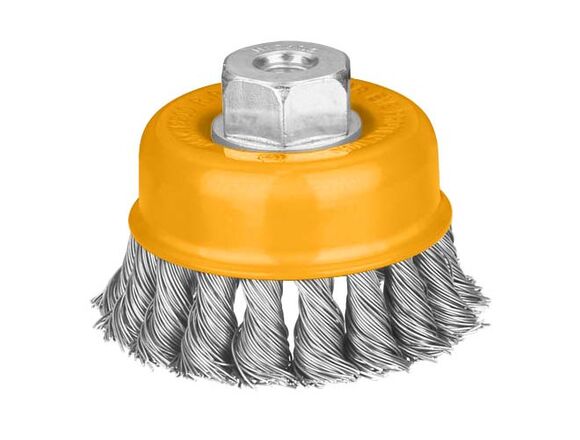 Щетка чашечная INGCO WB21251 используется для работы с УШМ. Служит для зачистки поверхностей покрытых лаком, краской, подходит для устранения ржавчины на металлических изделиях.