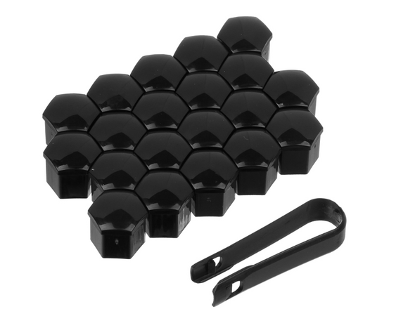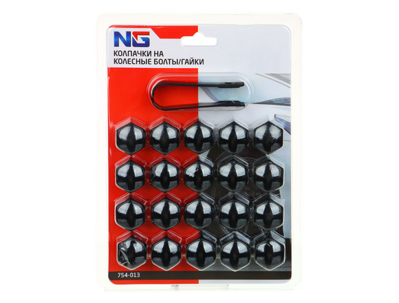 Колпачки на колесные болты/гайки 19 мм, 20 шт.+ съёмник, пластик, черный NG (1/100)