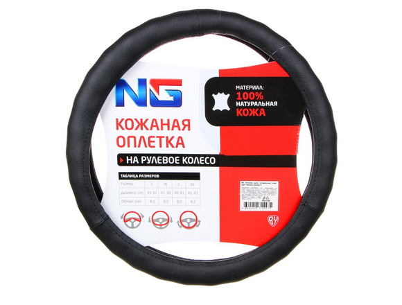 Оплетка руля NEW GALAXY натуральная черная кожа, размер S (35-37см)