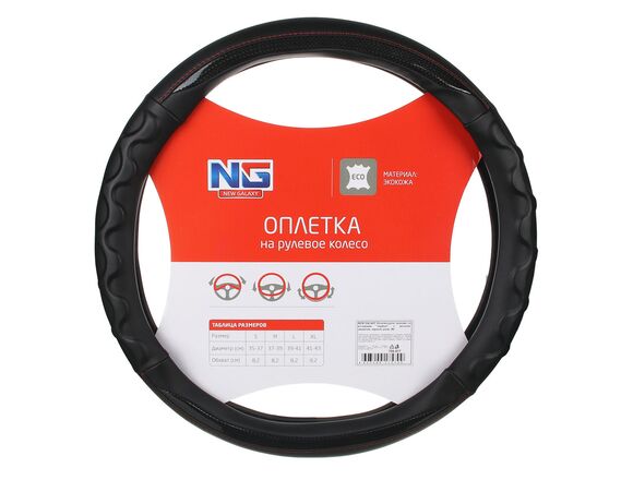 Оплетка руля NEW GALAXY экокожа, черная, со вставками карбона, размер М (37-39см)