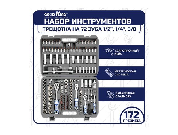 Набор головок GOODKING 1/2"-3/8"-1/4" 172пр (1/2)