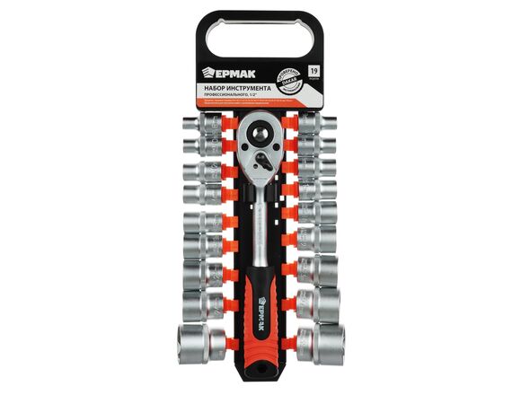 Набор головок с трещоткой ЕРМАК 19 предметов, 1/2" (головки 8-32мм, трещотка)