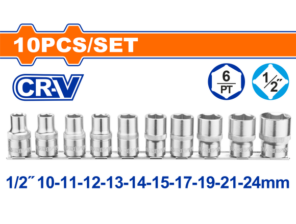 Набор головок торцевых WADFOW 1/2" 10шт 10-24мм (1/10)