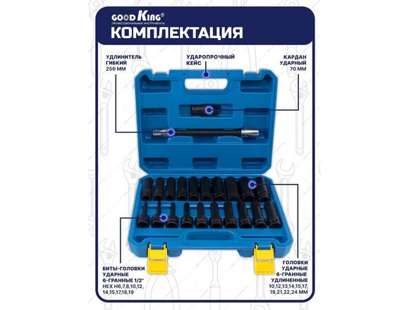 Набор головок ударных GOODKING 22пр 1/2 10-24мм 1/2 H6-H19
