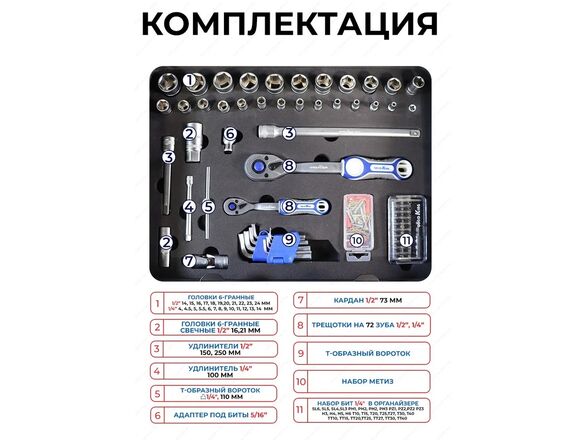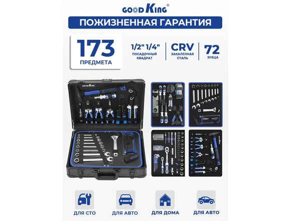 Набор головок и инструмента GOODKING 173пр 1/2 1/4 +голов/биты/ключи/шги/молот/отвер(1/1)